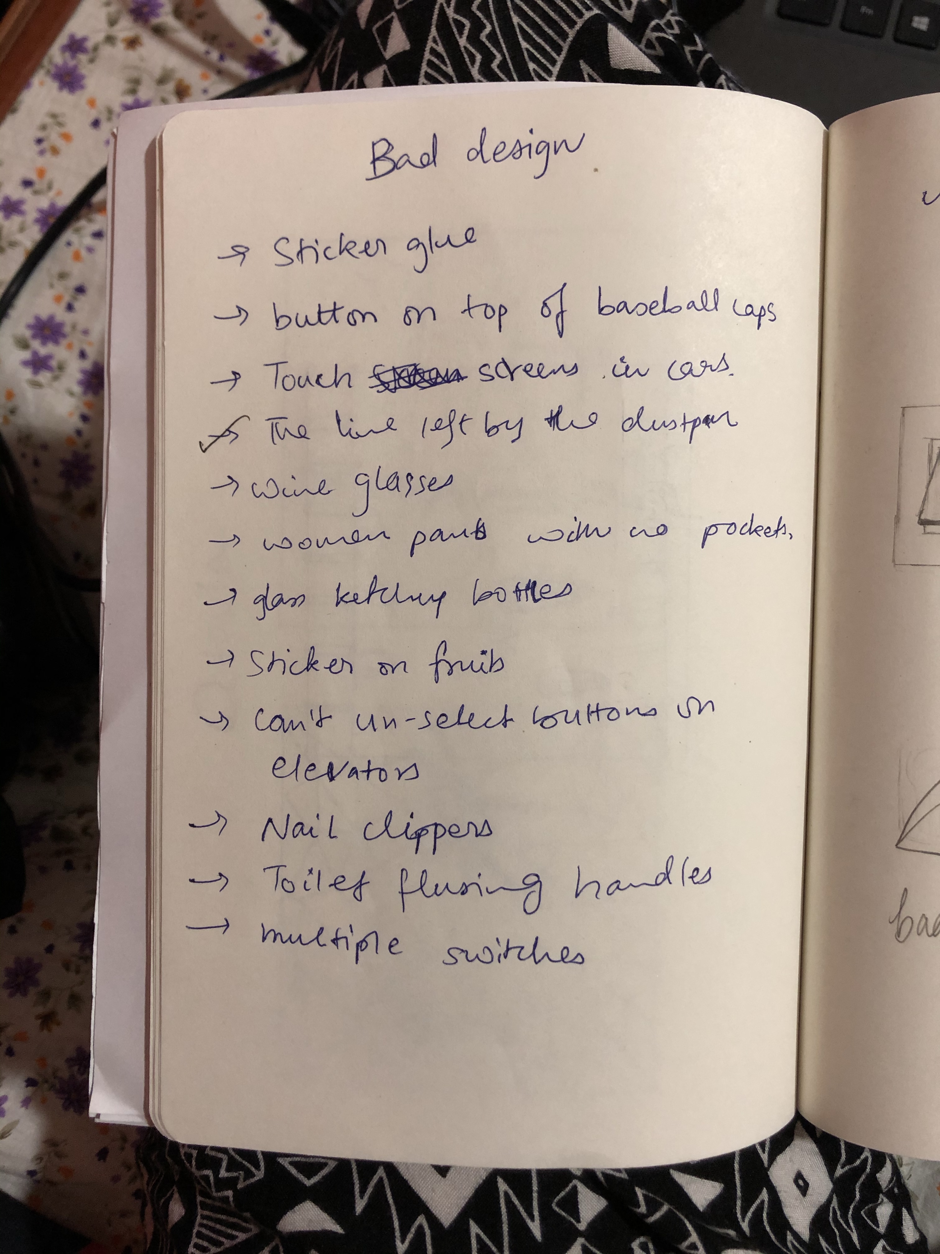 We were also told to write down 15 bad design and good design products.