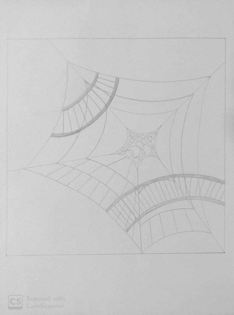 We used tracing sheets to make six layers from our drawings for our project and was also told to make a clean white 5 square cube. After tracing all lower layers we were told to find negative and positive space in our drawings. Specially I was told to give more detailing in my drawings even though it was good enough but as a single layer it was very basic. So I decided to add more elements in my drawing.