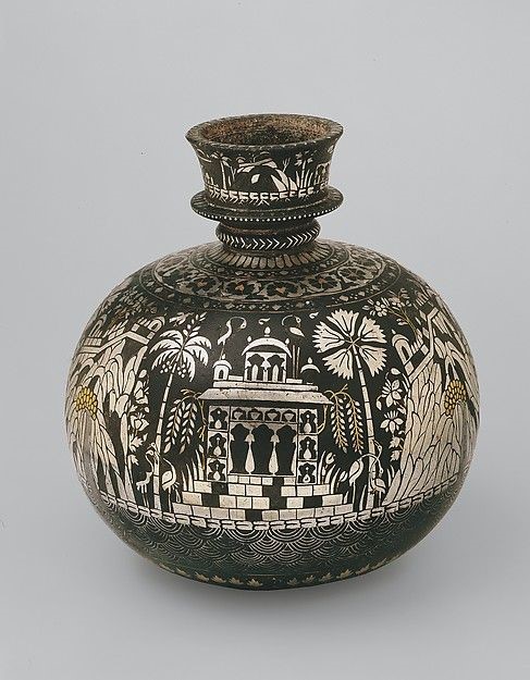Bidri Huqqa (Water Pipe) Base with a Meandering Riverside Landscape