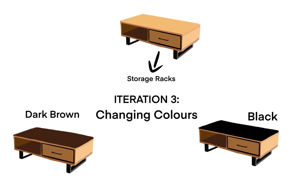 These were my 5 digitally made iteration. I had a lot of difficulty in making them as this is my first time making something in interior design and i was very excited for this! I also did a lot of research on how industrial style furniture looks like! I took coffee table as my element that i moved forward to work with. Our faculty told us to identify a method of elimination to arrive at the best possible iteration we have made so far. We were told to pose as a customer by ourselves. The iteration has to presented in the best possible manner. After that we have make a mock prototype of the iteration before the final iteration. We can use the materials which are available at home. Now this is to examine us that what we can do if we are stuck at home because of the lockdown. So the entire experimentation changes according to COVID-19. The challenge is to be more creative and present it in the best possible way.